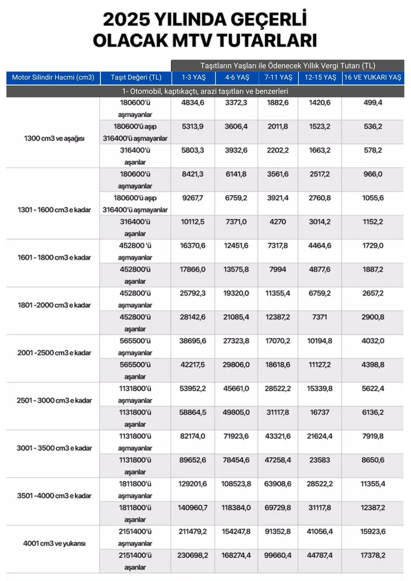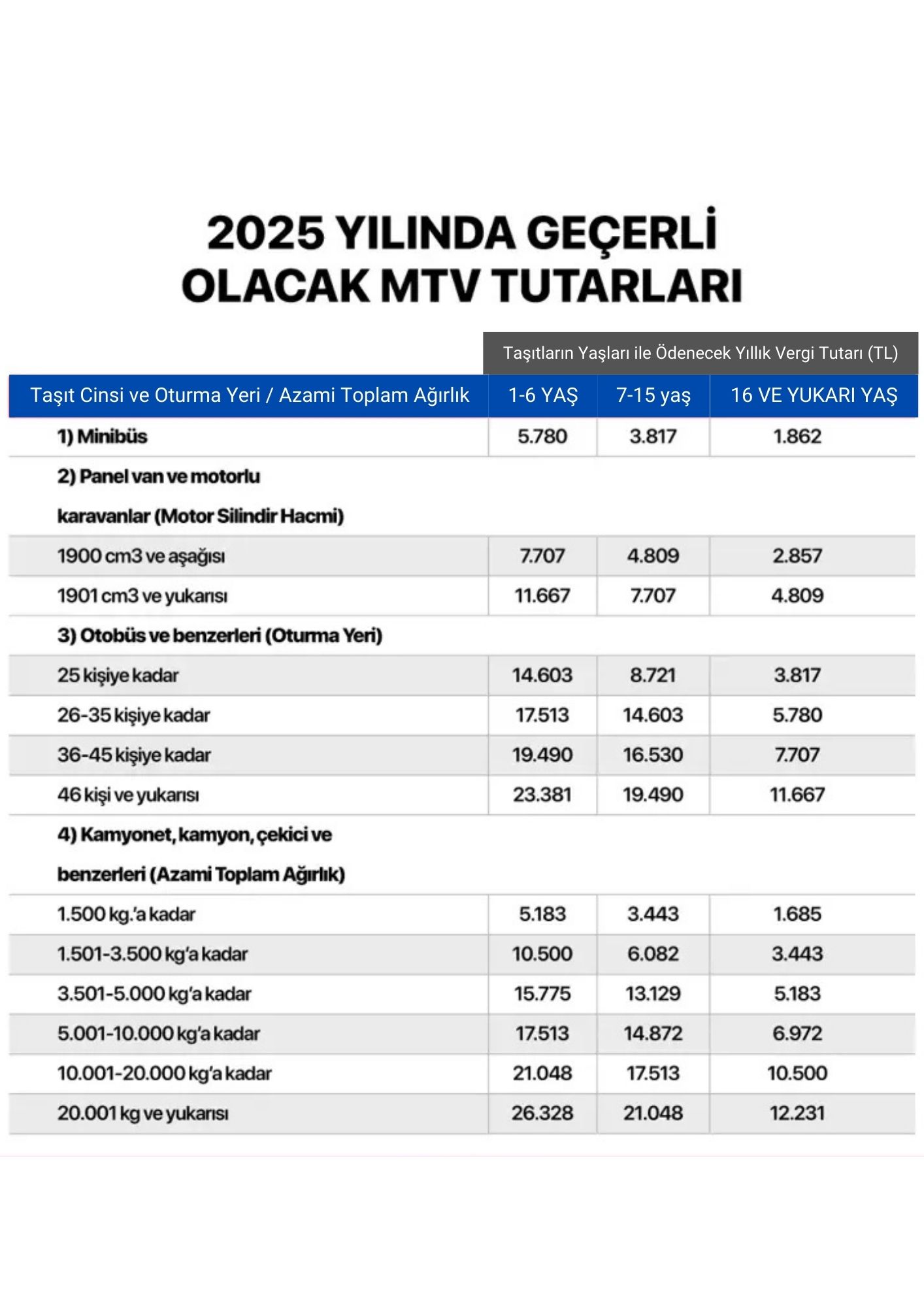 2025 Motorlu Taşıtlar Vergisi (MTV)