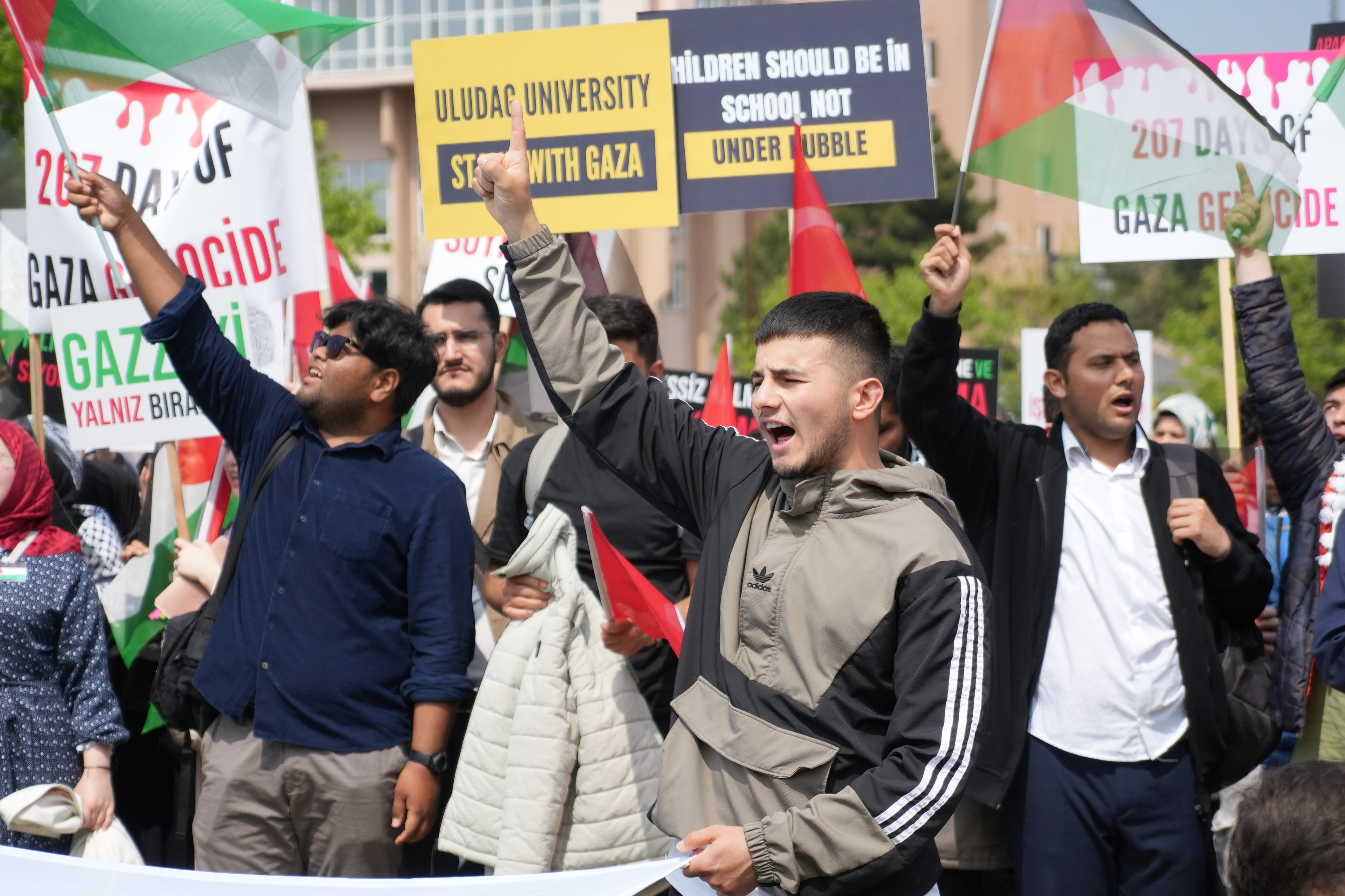 ABD’de yapılan üniversite eylemlerinin ardından Bursa Uludağ Üniversitesi öğrencileri de yerleşke içerisinde filistin için yürüyüş gerçekleştirdi. Sloganlar atılarak yapılan yürüyüşün ardından kampus içerisinde çadır kuran öğrenciler, burada Gazze dayanışması için 7 gün boyunca nöbet tutacaklarını açıkladı.