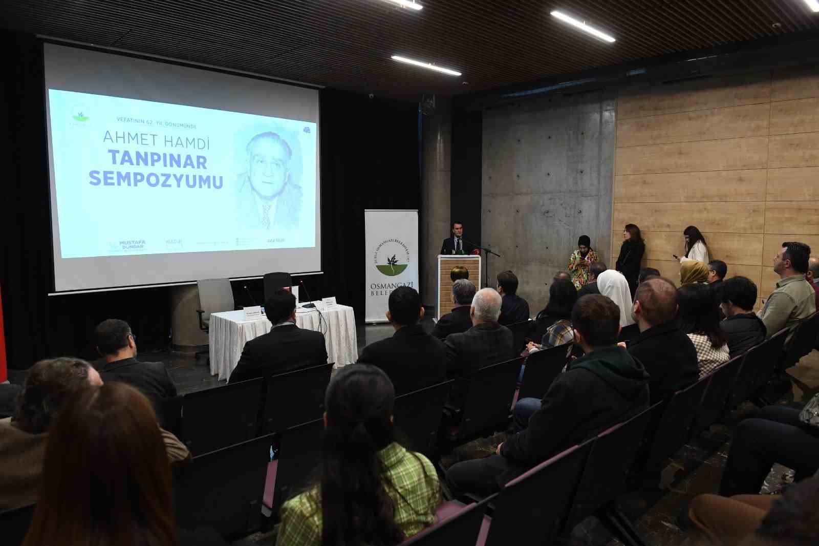 Sempozyumun açılış konuşmasını yapan Osmangazi Belediye Başkanı Mustafa Dündar, “Osmangazi Belediyesi olarak sosyal ve kültürel faaliyetler konusunda iddialı çalışmalar yürütüyoruz. Ahmet Hamdi Tanpınar Edebiyat Sempozyumu da bunlardan bir tanesi. Ahmet Hamdi Tanpınar, yaşarken ‘sükût suikastı’na uğradığını söylüyor. Osmangazi Belediyesi olarak bizler yapmış olduğumuz edebiyat yarışmaları, sempozyumlar ve çıkardığımız dergiler ile yaşadığı dönemde kıymeti anlaşılamamış olan Tanpınar’ı geleceğe taşıyoruz. Bu sene Ahmet Hamdi Tanpınar Edebiyat Yarışması’nın 23’üncüsünü düzenliyoruz. Bir kişinin Ahmet Hamdi Tanpınar hakkında bir şeyler yazabilmesi için Tanpınar’ın eserleri ve edebiyatçı kişiliği konusunda bilgi sahibi olması, onun düşüncelerini bilmesi gerekiyor. Yani Tanpınar’ı okuması gerekiyor” dedi.Ahmet Hamdi Tanpınar Edebiyat Yarışması’nın tüm dünyanın takip ettiği bir yarışma olduğuna vurgu yapan Başkan Dündar, “Bu yarışma sayesinde Türk edebiyatına birçok eser kazandırdık. 2001 yılından bu yana yarışmamızı düzenliyoruz. Yarışmamız yıllar geçtikçe kurumsal bir hal aldı. Ahmet Hamdi Tanpınar Edebiyat Yarışması’nı, bir yarışma olmaktan çıkartıp Ahmet Hamdi Tanpınar Etkinlikleri’ne dönüştürdük. Akademisyenlerimiz ve edebiyatçılarımız ile birlikte Ahmet Hamdi Tanpınar Akademisi’ni oluşturduk. Bu akademi çerçevesinde de bu yıl 7’incisini gerçekleştirdiğimiz Ahmet Hamdi Tanpınar Sempozyumu’nu düzenliyoruz. Ahmet Hamdi Tanpınar Akademisi çerçevesinde bir de dergi çıkartıyoruz. Yılda bir çıkan bu dergimizin 8’inci sayısı yayında. Güzel bir sempozyum olmasını temenni ederek, tüm katılımcılarımıza dolayı teşekkürlerimi sunuyorum” diye konuştu.Sempozyumun konuşmacılarında Prof. Dr. Abdullah Uçman da, Ahmet Hamdi Tanpınar’ın son 25-30 yıldır üzerinde en çok konuşulan, münazara edebiyatçılardan bir tanesi olduğuna dikkat çekerek, “Tanpınar çok yönlü bir şahsiyettir. Kendisi ölümünden sonra şair olarak anılmak istiyorsa da daha çok romancı ve fikir adamlığı yönüyle ön plana çıkmıştır” dedi. Osmangazi Belediyesi’nin 23 yıldır düzenlediği Ahmet Hamdi Tanpınar Edebiyat Yarışması’nın takdiri hak eden bir etkinlik olduğuna vurgu yapan Uçman, “Bu yarışma sayesinde Türk edebiyatına şiir, roman ve deneme yeni isimler kazandırılıyor. Bu çok önemli. 8 yıldır, yılda 1 kez olmak üzere Tanpınar Zamanı adlı dergi çıkartılıyor. Bir de bu yıl 7’incisini düzenlediğimiz Ahmet Hamdi Tanpınar Sempozyumu var. Bu çalışmaların en önemli tarafı tüm bu etkinliklerin kitap haline getirilmesi ve kütüphanelerde yerlerini alması” ifadelerini kullandı.