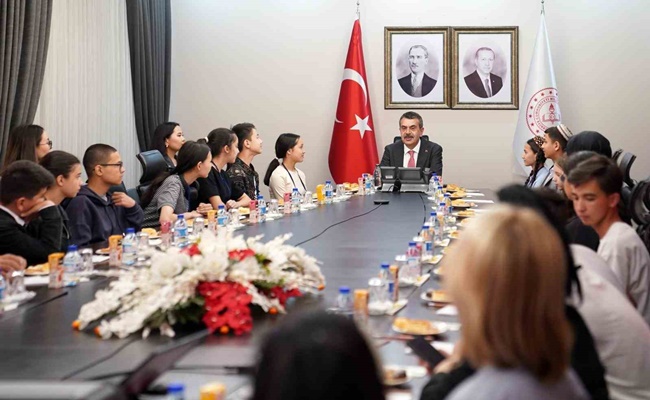 Türki Cumhuriyetler’den Türkiye’ye gelen 30 çocuğu makamında ağırladı.