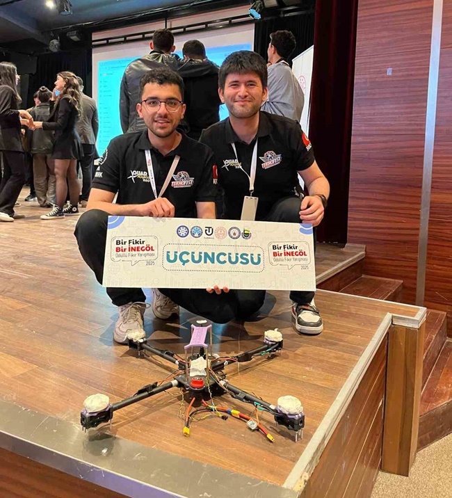 Bursa Teknik Üniversitesi öğrencileri, teknoloji yarışmalarına damga vurmaya devam ediyor. Ulusal ve uluslararası çaptaki organizasyonlarda, tasarladıkları yerli ve milli, yenilikçi çözümlerle başarı toplayan BTÜ öğrencileri, bu kez İnegöl’de 3’ncülüğü hak etti. İnegöl Belediyesi tarafından düzenlenen "Bir Fikir Bir İnegöl Ödüllü Fikir Yarışması’nda, BTÜ-QUADRUPLET R&D Takımı, tarımsal üretime yönelik geliştirdiği insansız hava aracı projesiyle derece aldı. Mühendislik ve Doğa Bilimleri Fakültesi Mekatronik Bölümü öğrencileri Emre Öz ve Alperen Karabudak’ın tasarladığı "Tarımsal İnsansız Hava Araçları" (Tarım ve Kırsal Kalkınma) başlıklı proje, tarımsal üretimde yaşanan insan gücü eksikliği, verimsiz arazi kullanımı ve artan gıda ithalatı gibi önemli sorunlara çözüm olmayı hedefliyor.