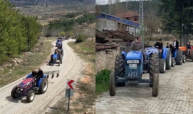 Bursa'nın Issızdere Köyü çiftçilerinin bayramlaşma geleneğinde kilometrelerce uzunlukta traktör konvoyu oluşturuluyor.