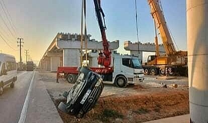 Kaza, saat 05.30 sıralarında Bursa-Ankara karayolu üzeri İnegöl girişinde meydana geldi.İnegöl’den Bursa’ya seyir halinde olan Sürücü Mustafa Kemal Ö.(45) yönetimindeki 16 CYM 15 plakalı otomobil, sürücüsünün kontrolünden çıkarak üst geçit inşaat alanına düştü.Yan duran otomobilde sürücü ile araçtaki yolcular Nermin Y.(55), Nurcan Ö.(44) ve Mihrimah Sultan Ö.(11) yaralandı.Yaralılar kaza yerine sevk edilen Ambulanslarla İnegöl Devlet Hastanesine kaldırıldı.Polis kazayla ilgili soruşturma başlattı.