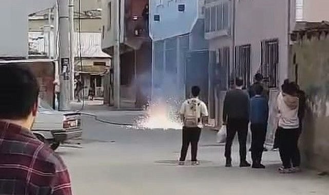 Bursa'da elektrik telinin kopması sonrasında akım yolda kıvılcımlara neden oldu. Mahallelinin büyük korku yaşadığı o anlar kameralara saniye saniye yansıdı...