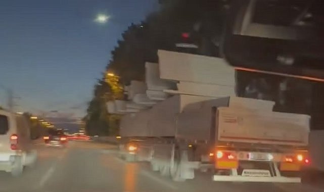 Olay, merkez Nilüfer ilçesi Sanayi Caddesi üzerinde meydana geldi. Sürücüsü henüz öğrenilemeyen açık dorseli tır, gereğinden fazla yük alarak seyahat etmeye başladı. Sanayi Caddesi üzerinden Mudanya istikametine giden tır, diğer sürücülerin de canını tehlikeye attı.O anlar saniye saniye cep telefonu kamerası ile kaydedildi.
