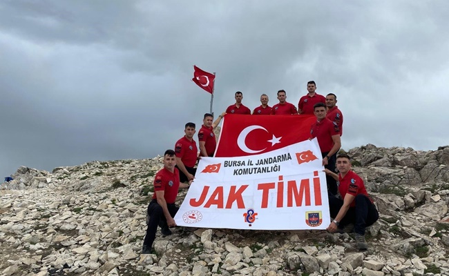 Jandarma Teşkilatı’nın 185. kuruluş yıldönümü nedeniyle, Bursa İl Jandarma Komutanlığı'na bağlı Jandarma Komando Arama Kurtarma (JAK) ekipleri Uludağ’da zirveye tırmandı. Yaklaşık 2543 metre yüksekliğe tırmanan ekipler, patika yollardan geçip, jip yolu, maden ve kapı mevkileri ile küçük zirve, rasat düzü, Yasemin Geçidi, Baykan sırtları, Karakayalar ve büyük zirve rotası takip edilerek 6 saatlik tırmanış gerçekleştirdi. Bursa’nın zirvesinde Türk bayrağını dalgalandıran ekipler hatıra fotoğrafı çektirirken, vatandaşlar tarafından da büyük övgüler aldı.