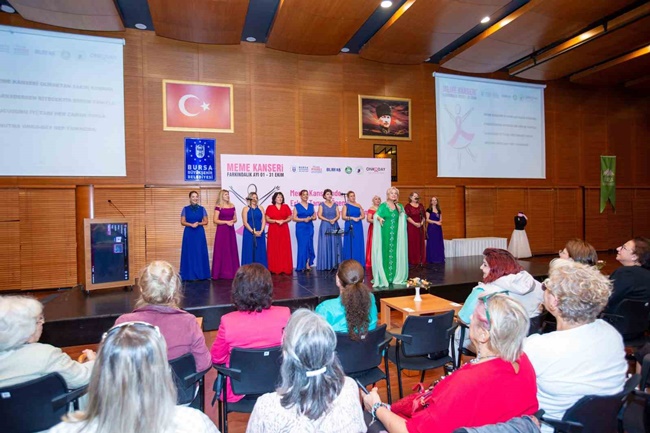 Uludağ Onkoloji Dayanışma Derneği Başkanı Füsun Önen, Bursa Kent Konseyi Kadın Meclisi Başkanı Derya Şimşek Aksakal ve Burfaş Yönetim Kurulu Başkanı Yalçın Işıkyıldız’ın açılış konuşmalarıyla başlayan etkinlikte uzmanlar, meme kanserinde erken teşhisin hayat kurtarıcı etkisine dikkat çekerken, korunma yolları ve tedavi yöntemleri hakkında önemli bilgiler sunuldu.Bursa Uludağ Üniversitesi Tıp Fakültesi Tıbbi Onkoloji Bilim Dalı Başkanı Prof. Dr. Türkkan Evrensel, farkındalık ayı ile ilgili olarak, "Ekim ayı, meme kanseri farkındalığını artırmak için önemli bir dönem. Sağlık Bakanlığı, üniversiteler ve sivil toplum kuruluşları kadınları bilinçlendirmek amacıyla risk faktörlerini ve korunma yollarını anlatıyor. Erken teşhis, meme kanserinden kurtulmada büyük rol oynuyor. Bu uyarılara dikkat ederek erken teşhisle başarılı bir tedavi mümkün" dedi.Kendi kendine meme muayenesinin meme kanserinden korunmada en basit ve etkili yöntemlerden biri olduğunu belirten Prof. Dr. Hicran Yıldız ise "Her kadının evde yalnızca 10 dakikasını ayırarak yapabileceği bu muayene, meme kanserine karşı oldukça koruyucudur. Her 8 kadından biri meme kanserine yakalanma riski taşıyor. Düzenli yapılan bu muayeneler erken teşhise imkan sağlar ve tedavi başarı oranını artırır" ifadelerini kullandı.Operatör Dr. Coşkun Özer, meme kanseri tedavi yöntemlerindeki gelişmeleri anlatarak, "Eskiden meme dokusunun tamamen alınması gerekirdi. Ancak günümüzde kemoterapi, radyoterapi ve gelişmiş görüntüleme teknikleri sayesinde meme koruyucu cerrahiler yapıyoruz. Kadınlarımız meme dokusuna zarar vermeden kanserli dokunun çıkarılmasıyla estetik bir görünüm de kazanıyorlar. Meme kanseri yüzde 90’ın üzerinde başarı oranıyla tedavi edilebilen bir hastalık" dedi.Eğitimin ardından Aysel Gürel Türk Müziği Korosu sahne alarak Türk müziğinin seçkin eserlerini seslendirdi.