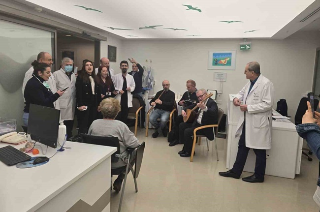 Bursa’daki hastanenin onkoloji bölümünde kanserle mücadele eden ve kanseri yenen hastalar, Kanser Haftası’nın yaklaşması nedeniyle doktorlarıyla birlikte bir motivasyon etkinliğine imza attı. Türk sanat ve halk müziği parçalarını dinleyerek ve hareketli parçalara dans ederek eşlik eden hastalar unutulmaz hatıralar biriktirdi.