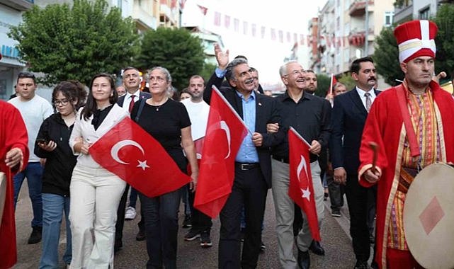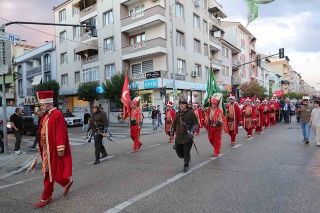 Atatürk Stadı’ndan başlayan Mehteran eşliğindeki kortej, İskele Meydanı’nda son buldu. Burada kurulan sahnede,