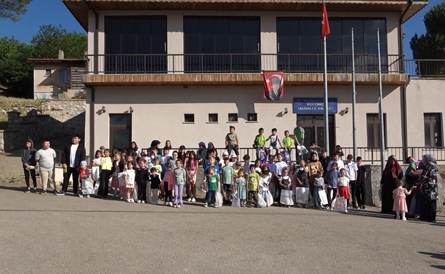Yüzlerce yıllık geçmişe sahip adak geleneği için köy meydanında bir araya gelen çocuklar, ellerindeki poşet ve kutularla kapı kapı dolaşarak kek, çikolata, pasta, şeker gibi hediyeleri alarak bayram sevincini erken yaşadı. Kerpiç evleri ve dar sokaklarıyla büyüleyici bir görünüme sahip Bursa'nın Keles ilçesine bağlı Gelemiç Köyü’nde yaşatılmaya çalışılan adak geleneğiyle çocuklara birlik, beraberlik ve dayanışma ruhunun aşılanması hedefleniyor.