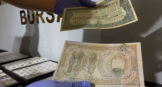 Bursa il Emniyet Müdürlüğü, Kaçakçılık ve Organize Suçlarla Mücadele Şube Müdürlüğü ekipleri tarihi eser kaçakçılarına yönelik yaptığı çalışmada, aldığı istihbari bilgiler sonucunda Nilüfer İlçesinde oturan R.Ö., isimli 66 yaşındaki bir iş adamını radarına aldı. Ekipler takip ettiği şüphelinin adresine Cumhuriyet Başsavcılığı talimatıyla düzenlediği baskında Napolyon ve Osmanlı dönemlerine ait 887 gümüş, 122 altın olmak üzere 1009 sikke 4 adet Osmanlı dönemine ait kağıt para ele geçirdi. Paha biçilmez operasyonda tarihi eserler muhafaza altına alınıp, inceleme yapılmak üzere ilgili müze müdürlüğüne teslim edilirken, şüpheli R.Ö. hakkında yasal işlem başlatıldı.