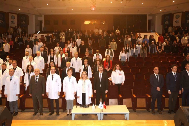 Konuşmasında öğrencilere seslenen Dekan Coşkun, "Sizler geleceğin hekimleri olarak bilimin ışığında ilerleyen, insan hayatına dokunmaya hazırlanan birer meşale taşıyorsunuz. Tıp eğitimi zorlayıcı olabilir. Bazen size tükenmişlik hissi verebilir ama unutmayın ki her zorluk sizi daha donanımlı, daha güçlü ve daha bilinçli bir hekim haline getiriyor. Gelecekte bir hastanın gözlerindeki umudu görmek, bir teşhisle hayat kurtarmak, bir dokunuşta şifa vermek işte tüm bu fedakârlıkların anlamı burada saklı. Mesleğinizde sabırlı olun. Her daim öğrenmeye açık olun ve en önemlisi vicdanınızı asla kaybetmeyin. Çünkü iyi bir hekim sadece bilgisiyle değil, merhametiyle ve insan sevgisiyle de fark kuruyor" ifadelerini kullandı.Program, Tıp Tarihi ve Etik Anabilim Dalı Öğretim Üyesi Prof. Dr. M. Murat Civaner’in "14 Mart Tıp Öğrencilerinindir" isimli konuşmasının ardından sona erdi.