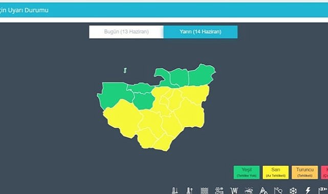 Bursa için Meteoroloji Genel Müdürlüğü tarafından yarın 12.00’dan başlayıp 22.00’a kadar sürmesi beklenen uyarıda şu ifadelere yer verildi: "Rüzgarın batı ve güneybatı yönlerden kuvvetli ve kısa süreli fırtına şeklinde (50-70 km/saat, kısa süreli 80 km/saat) esmesi beklendiğinden ulaşımda aksamalar, çatı uçması, toz savrulması gibi olumsuzluklara karşı dikkatli ve tedbirli olunmalıdır."