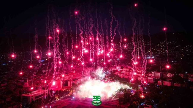 Başkan Enes Çelik’in göreve başlamasının ardından ‘Yanındayım’ kampanyasıyla birlikte birlik beraberliğini tekrar hatırlayan yeşil-beyazlı camia, bu akşam bir araya geldi. Bursaspor Kulübü’nün 61. kuruluş yıldönümünde taraftarlar her şeyin başladığı nokta olan Atatürk Stadyumu Miras Alanı’nda buluştu. Binlerce meşalenin yandığı organizasyonda tam 1963 adet de havai fişek atıldı. Gecenin gündüze çevrildiği görülürken, Bursaspor taraftarı muhteşem tezahüratlarla da yeri göğü inletti. 20 bine yakın Bursaspor taraftarı adeta gelecekteki güzel günlerin ateşini bugünkü organizasyonla birlikte yaktı ve bugünü milat kabul etti.