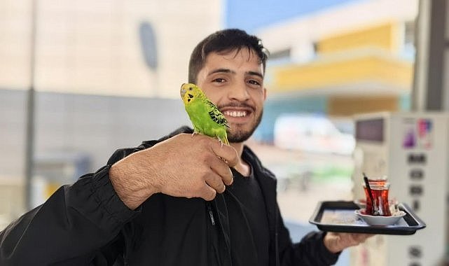 İnegöl Devlet Hastanesi kantininde çay servisi yapan 20 yaşındaki İbrahim Bilici, 2 yıl önce sahiplendiği ve ‘İbiş’ ismini verdiği muhabbet kuşunu yanından ayırmıyor. Bilici, omzundan ayrılmayan İbiş’le beraber kantinde hizmet veriyor. Bilici, “İbiş, çok akıllı ve sevimli bir kuş. Onunla çok iyi anlaşıyoruz. Dışarıya çıktığım zaman uçmuyor, hep yanımda duruyor. Çay servisini beraber yapıyoruz, simit susamlarını falan hep kendisi yer. Yanımda duruyor götürdüğüm masalara, hep böyle yanımda durur. Bir yerleri pisletmez” dedi.