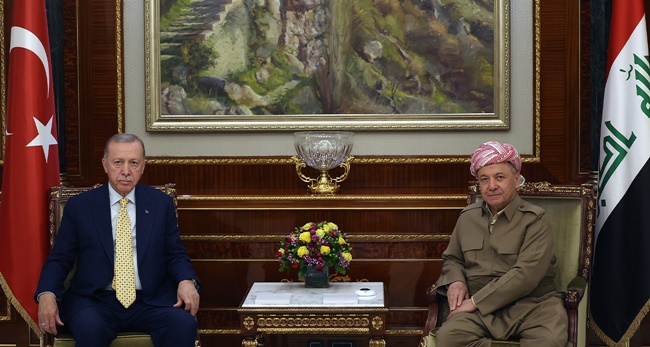 Cumhurbaşkanı Recep Tayyip Erdoğan, Irak’ta temaslarına devam ediyor. Cumhurbaşkanı Erdoğan, Erbil'deki temasları kapsamında Irak Kürt Bölgesel Yönetimi (IKBY) Başkanı Neçirvan Barzani ve IKBY Başbakanı Mesrur Barzani ile IKBY Başkanlık Sarayı'nda bir araya geldi.