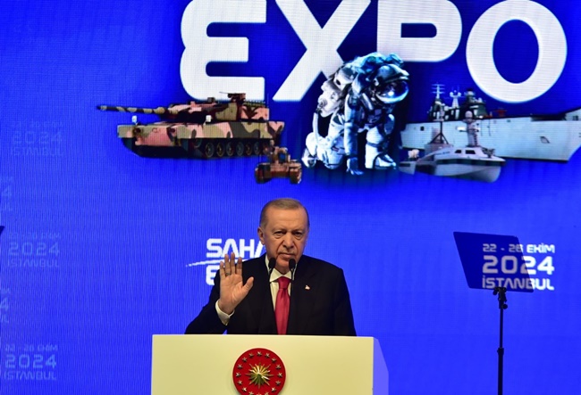 Türkiye’nin global savunma sanayii sektöründe güçlü bir oyuncu olma yolunda emin adımlarla ilerlediğini söyleyen Cumhurbaşkanı Erdoğan, "Bu başarı, teknolojiyi tasarlama, geliştirme ve üretme yanında stratejik işbirlikleri ve uluslararası projelerle de perçinleniyor. Bununla ne kadar iftihar etsek inanın azdır. Bakınız burada bazı güncel ve çarpıcı verileri sizlerle paylaşmak isterim. 2002’de savunma ihracatımız 248 milyon doları ancak buluyordu. Biz bunu aldık, biraz evvel de ifade ettiğim gibi 5,6 milyar dolara çıkardık. Sadece geçen yıl 185 ülkeye, 230’dan fazla savunma ürünü ihraç ettik. Savunma ve havacılık ihracatımız bu yıl eylül ayında bir önceki yılın aynı ayına göre yüzde 32 oranında yükseldi. İlk 9 aydaki ihracatımızda da geçen yılın aynı dönemine göre yüzde 12,2’lik bir artış oldu. Son 12 ayda gerçekleşen ihracatımız ise yüzde 10,4’lük artışla 6 milyar 15 milyon dolara ulaştı. Sadece 2024 yılı içerisinde savunma sanayii şirketlerimiz 178 farklı ülkeye ürün ihraç ederek ciddi bir rekora imza attı. Özellikle Bayraktar TB2, AKINCI, ANKA, AKSUNGUR gibi insansız hava araçlarımız dünyada büyük yankı uyandırmış ve oyun değiştirici olarak nitelendirilmiştir. Önümüzdeki dönemde buna insansız savaş uçaklarımız, KIZILELMA ve ANKA-3’ü de eklemeyi planlıyoruz. Bu asimetrik savunma ürünlerimizin de envantere girmesiyle Türkiye bu alandaki hakimiyetini daha da tahkim edecektir. Savunma sanayiinde yerlilik oranımızı hamdolsun yüzde 80’in üzerine çıkarmış durumdayız. Artık sadece kendi ihtiyaçlarımızın ezici çoğunluğunu teminle kalmıyor, dost ve müttefik ülkelerin güvenliğine de güçlü destek sağlıyoruz. Önümüze çıkartılan tüm engellere, maruz kaldığımız gizli-açık ambargolara, içimizdeki ihanet şebekelerinin sabotajlarına, müttefiklik hukukunu ayaklar altına alan kısıtlamalara rağmen son 22 yılda savunma sanayii alanında tam anlamıyla bir destan yazdık. Bu gerçeği muhalif, dost, düşman herkes görüyor, kabul ediyor. Türkiye’nin başarılarını kendilerine örnek alıyor. Bilhassa 2002 öncesi yıllarda teröre karşı mücadele eden paşalarımız, askerlerimiz, güvenlik kuvvetlerimiz Türk savunma sanayinin nasıl bir başarı hikayesine imza attığını çok iyi biliyor" ifadelerini kullandı.