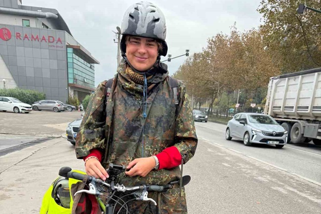 Almanya’nın başkenti Berlin’den bisikletiyle yola çıkan 20 yaşındaki Moritz Burgmeier Hırvatistan, Bosna Hersek, Karadağ, Arnavutluk ve Yunanistan’dan sonra Türkiye’ye geldi. Geldiği ülkelerin tarihi ve kültürel yerlerini ziyaret eden, yemeklerinin tadına bakan Burgmeier, gittiği yerlerde sosyal meydadan tanıştığı arkadaşlarında kalıyor. 2 bin 500 kilometre yol kat ederek Bursa’ya gelen Burgmeier, 1 gece konakladıktan sonra tekrardan yola çıkacak. Bisikletiyle dünyayı gezmeyi hedefleyen Moritz Burgmeier’in bir sonraki durağı İzmir olacak.