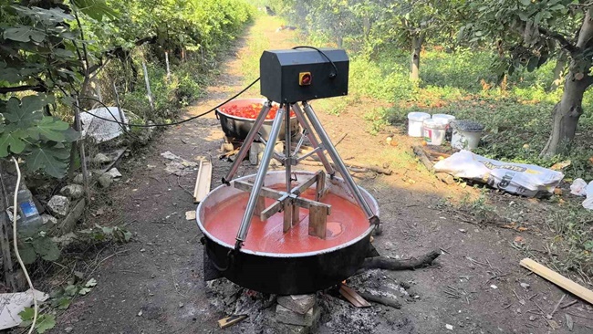 Projesinden bahseden Mehmet Alkan, "4 sene salça karıştır dediler, baktım olacak gibi değil. Bir şeyler uyduralım dedim. Eninde sonunda yaptık. Normalde metalden olması gerekiyor. Ağaçtan oldu ama biraz düzenleme gerekecek. Oturmalık bir şey yapacak kısmet olursa. Normalde motor hızını düşürüyor. Karıştır dediler bir gün, suratıma patladı. Ben de şöyle bir şey yapalım dedim. Alüminyumdan sağlıklı bir şekilde olsun dedik, şimdilik ağaçla idare ediyoruz. Yaptıktan sonra oldu" diye konuştu.Mehmet Alkan’ın eşi Cevahir Alkan da, "Rahatça karıştırıyorum, dumanda durmuyorum. Rahatlık oldu. 4-5 yıldır bu var. Daha önceleri hep elde, kürekle yapıyordum. Salça bir daha yapmayacağım dedim, makine yaptılar. Allah razı olsun" dedi.Mehmet Alkan daha önce de tasarladığı asansör sistemiyle meyve hasadı süresini yüzde 40 oranında azaltıp, mevsimlik işçi sayısını da yarıya indirmişti.
