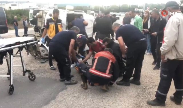 İnegöl'de direğe çarpan servis minibüsü devrildi! 13 yaralı
