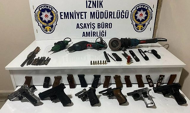 İznik İlçe Emniyet Müdürlüğü’ne bağlı ekipler, İznik merkezinde bir iş yerinde kaçak silah imalatı yapan bir işletme olduğunun bilgisini aldı. Ekipler, iş yerine yaptığı operasyonda E.T.’yi suçüstü yakaladı.