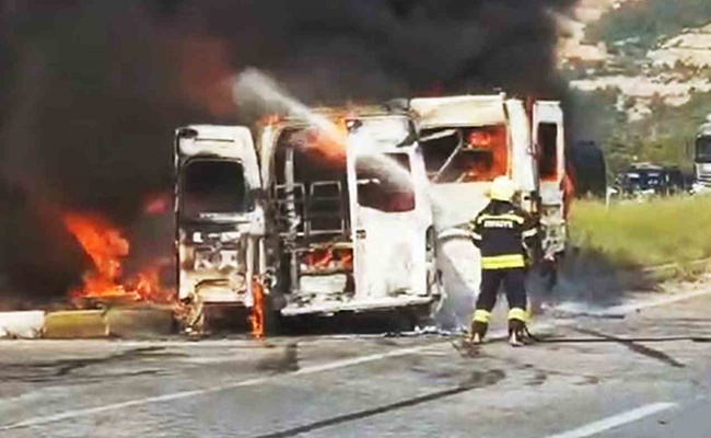 Edinilen bilgiye göre, Muğla karayolu Menteş kavşağında 48 BR 882 plakalı minibüs ile 48 S 5086 plakalı servis aracının çarpışması sonrası araçlarda yangın çıktı. Vatandaşların 112 Acil Çağrı Merkezine bilgi vermesi üzerine bölgeye Muğla Büyükşehir Belediyesi Milas İtfaiye, polis ve ambulans ekipleri sevk edildi.