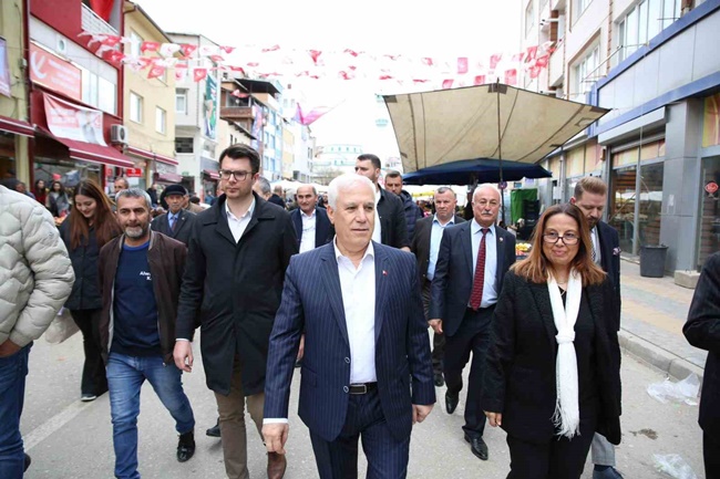 CHP Orhaneli Seçim Ofisi açılışının ardından çarşı-pazar esnafıyla bir araya gelen ve Orhaneli halkı tarafından büyük bir ilgiyle karşılanan Bozbey, burada yaptığı konuşmasında herkese gösterdikleri teveccühten dolayı teşekkür ederek, “Kıymetli Orhanelili hemşehrilerim, sabredin, hep birlikte gülümseyeceğimiz güzel günlere sadece 19 gün kaldı. Bursa’da sıkmadık el bırakmadık. Sizler dahil olmak üzere kentimizin her ilçesinde tarafımıza büyük teveccüh gördük. Onların çekindikleri için gidemediği çarşı ve pazarda, hemşehrilerimiz ve esnafımızdan aldığımız geri dönüşlerle birlikte gözlemlerimiz ve araştırmalarımıza dayanarak söylüyorum; haberiniz olsun, kazanıyoruz. Hiç merak etmeyin. 1 Nisan’da hep birlikte gülümsüyoruz” ifadelerini kullandı.