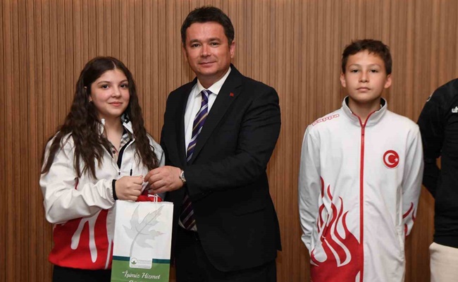 Katıldıkları turnuvalarda Bursa’yı başarıyla temsil eden ABFA Spor Kulübü eskrim sporcularını makamında kabul eden Başkan Erkan Aydın, genç sporcuları tebrik etti. U12 Erkekler Flöre Birincisi Vedat Tuna Karalar, U14 Bayanlar Flöre Birincisi Ada Küfeciler, Yıldız Kadınlar Flöre kategorisinde Türkiye Birincisi Ada Küfeciler, Genç Kadınlar Flöre kategorisinde Türkiye İkincisi Ayşe Aksoy, başarılarını Başkan Aydın ile paylaştı.