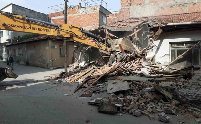 Osmangazi Belediyesi, mahalle sakinlerinin emniyeti ve sağlığı açısından risk oluşturan metruk binaları tespit edip, yapılan incelemelerin ardından tek tek yıkıyor. Suç örgütlerinin yuvalandığı, aynı zamanda çevre kirliliğine yol açan metruk binalar, mahallelerde huzuru bozmasının yanı sıra vatandaşların can ve mal güvenliği adına da tehlike arz ediyor. İlçedeki metruk binaların oluşturduğu riskleri ortadan kaldırmak ve çevreye zarar veren unsurlara engel olmak amacıyla harekete geçen Osmangazi Belediyesi Yapı Kontrol Müdürlüğü ekipleri, son olarak Atıcılar Mahallesi’nde bulunan bir metruk binayı yıktı.