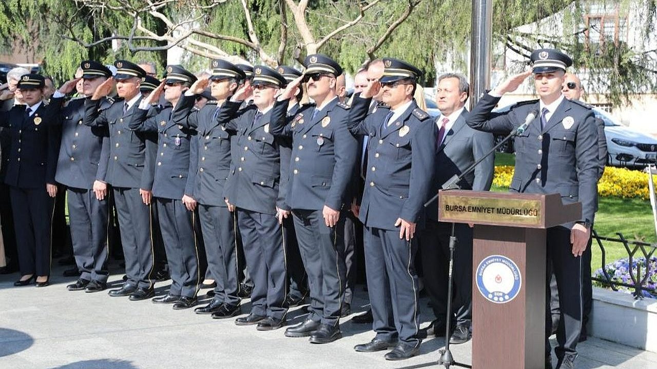 Polis teşkilatının 179. kuruluş yıl dönümü Bursa'da da törenle kutlandı. İl Emniyet Müdürü Sabit Akın Zaimoğlu tarafından Heykel'deki Atatürk anıtına çelenk sunumuyla başlayan tören, saygı duruşunda bulunulması ve İstiklal Marşı'nın okunması ile devam etti.